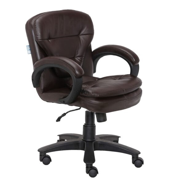 Buy low back crepe executive chair in brown color online at the best price in India. This low back crepe executive chair in padded brown color offers the best ergonomics for your body. Built with high-quality durable material it ensures unobstructed years of usage. It has a good weight capacity and is made from the highest quality materials. Step into your comfort zone even while working hard at your desk. Buy this nice good office chair at a low price. Hurry don’t miss the offer, choose from the wide range of mid back executive chairs and buy online at VJ Interior