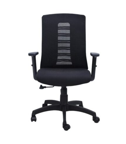 Calvo Mesh Padded Medium Back Office Chair Black Color with seat slider and fixed arms is the new option for the manager or CEO. The mesh chair comes with a Tilt Mechanism which allows you to lean back into the chair and also helps with stretching while sitting for long