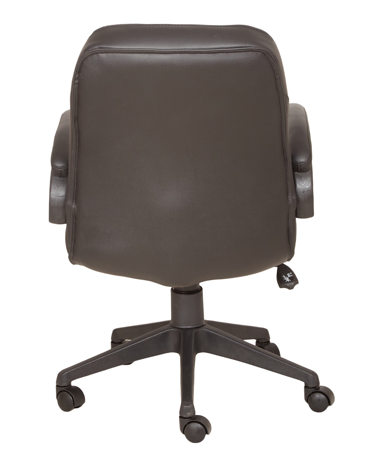 The quality of this mid back stylish black leather executive office chair is amazing. Reclines back and can be locked into a stand-up position. Armrests and wheels are thick plastic with a cushion on the armrest The chair goes up and down very smoothly. Overall it’s a good product. I highly recommend it!
