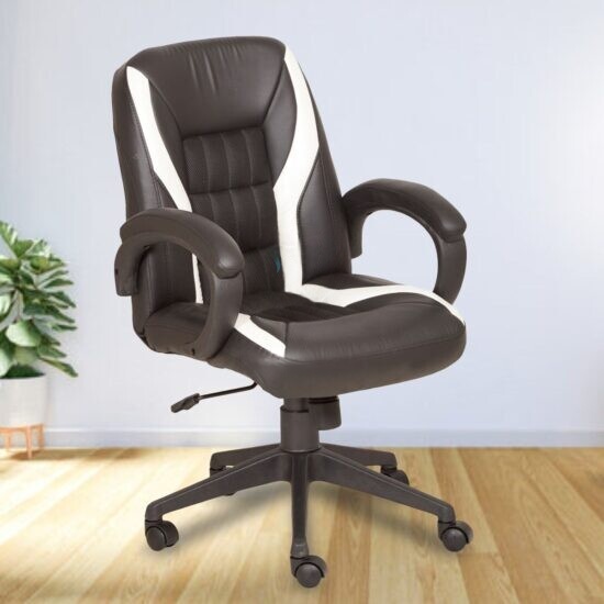 Explore our range of mid-back stylish black leather executive office chairs with ss wheelbase & buy them at the best price in India from VJ Interior (leading manufacturers, suppliers, and exporters of an office chair). This mid-back stylish black leather executive office chair provides not only sleek, professional style but also sophisticated support for all-day comfort.  These chairs give superior lumbar support, a 360-degree swivel option, and a height adjustment facility. Some of them have waterfall front seat edges to ease the pressure from the lower legs and considerably improve circulation. These mid-back leatherette with fabric office chairs are great for when you want an office chair that will get you through your day. Whether you’re responding to emails, evaluating reports, or brainstorming with colleagues.