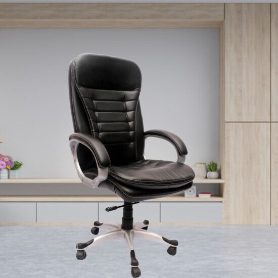 High back executive chair in designer dark black color comes with a stainless steel mirror polish shining legs and with heavy-duty caster support and stylish lever mechanism for adjusting the height and tilt of the chair for you complete comfort while you are sitting on the chair. With years of experience, VJ Interior becomes one of the famous names in manufacturers and suppliers of these high back revolving chairs in India. These high back revolving office chairs are great for any kind of office or home where you have to work full day by sitting for a long time.