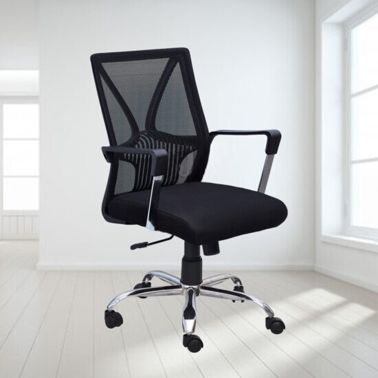 Explore our range of cushioned Black Mesh executive chair with ss wheelbase & buy it at best price in India from VJ Interior (leading manufacturers, suppliers, and exporters of an office chair). These high back office executive chairs give superior lumbar support, 360-degree swivel option and height adjustment facility. Some of them have waterfall front seat edges to ease the pressure from the lower legs and considerably improve circulation.