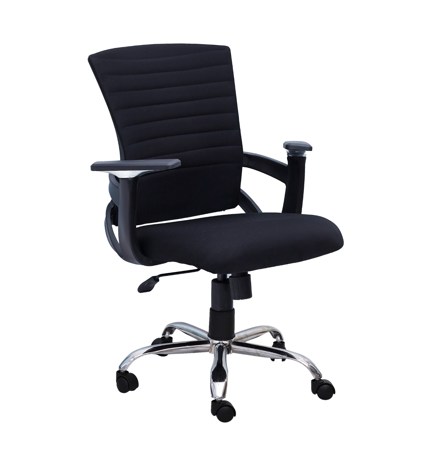 Explore our range of cushioned Black Mesh executive chairs with ss wheelbase & buy them at the best price in India from VJ Interior (leading manufacturers, suppliers, and exporters of an office chair). These Low back fabric chairs suitable for working, gaming, studying as it maintains the posture of the body smooth wheels gives freedom of movement and reduces the need to move around on foot relieves cramps, fatigue, tension and enhances your performance. Which gives superior lumbar support, a 360-degree swivel option, and a height adjustment facility. Some of them have waterfall front seat edges to ease the pressure from the lower legs and considerably improve circulation.