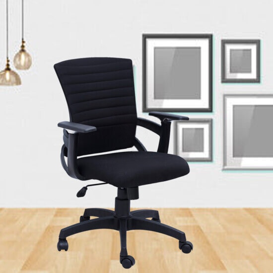 Explore our range of cushioned Black Fabric executive chairs with nylon wheelbase & buy them at the best price in India from VJ Interior. These Low back fabric chairs are suitable for working, gaming, and studying as it maintains the posture of the body smooth wheels give freedom of movement and reduces the need to move around on foot relieving cramps, fatigue, and tension, and enhancing your performance. Which gives superior lumbar support, a 360-degree swivel option, and a height adjustment facility. Some of them have waterfall front seat edges to ease the pressure from the lower legs and considerably improve circulation.